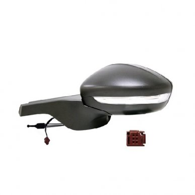 Complet, avec coque noire, glace convexe et feu clignotant. Réglage intérieur manuel, rabattable manuellement avec connecteur rouge 2 fiches.