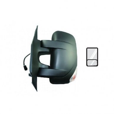 Complet avec coque noire, feu clignotant (16W), 1 glace supérieure convexe et 1 glace inférieure angle mort. Réglage intérieur électrique, dégivrant, rabattable manuellement. Bras court.